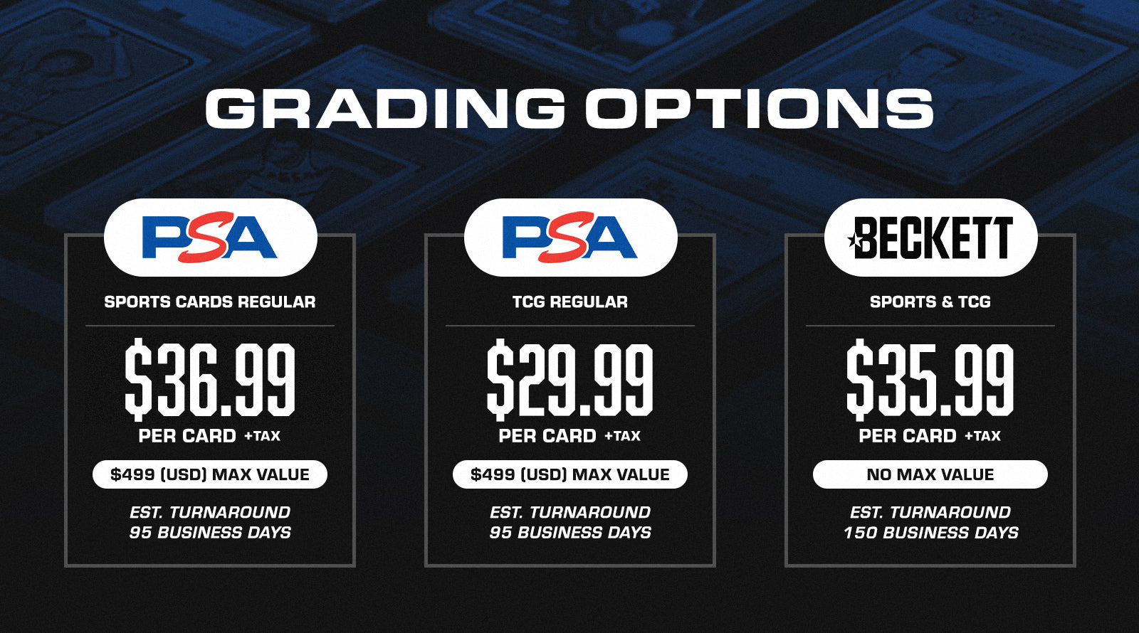 3. Once payment is made (in-store) we will properly package and safely store your cards for submission to the chosen grading company.